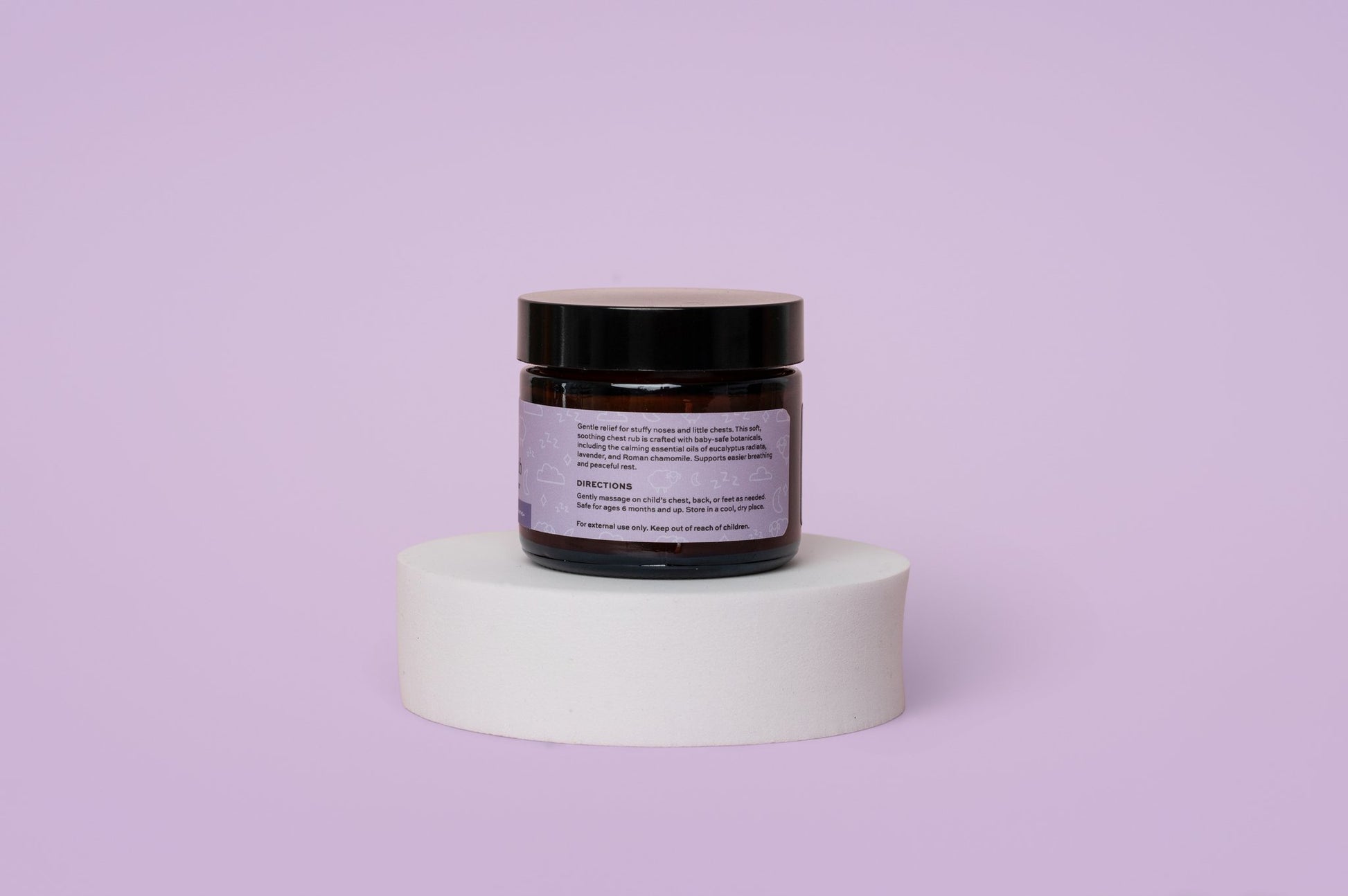 Made in small batches with honest ingredients, each rub blends Organic Virgin Coconut Oil, Mango Butter, Jojoba Oil, and Beeswax for a smooth, nourishing base. We add Organic Eucalyptus Radiata, Lavender, and Roman Chamomile to create its calm, bedtime-friendly scent.
